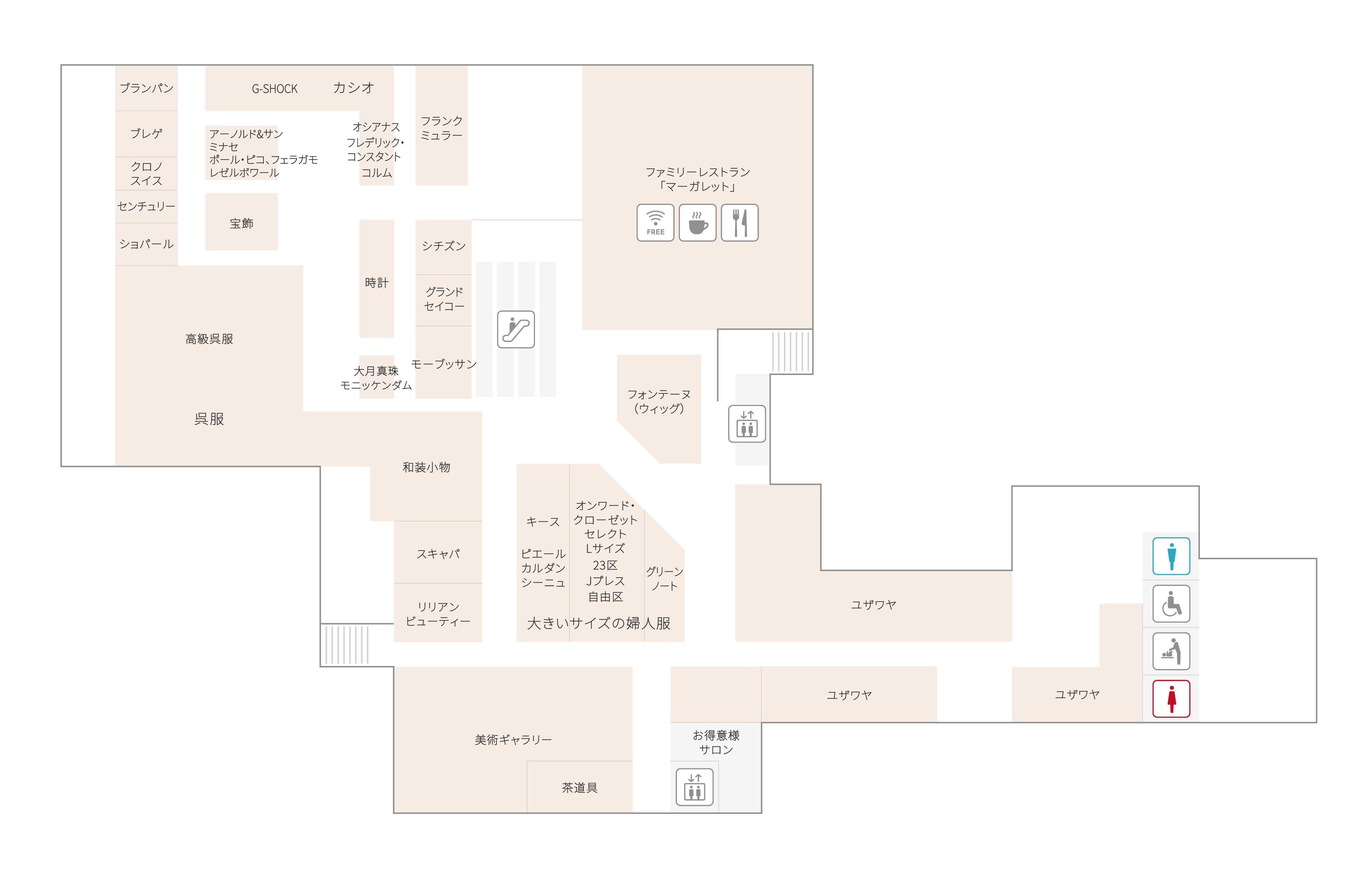 이 플로어에서는 Wi-Fi 무료 접속 서비스를 이용하실 수 있습니다.패스워드 “fujisaki”를 입력해 이용해 주세요.