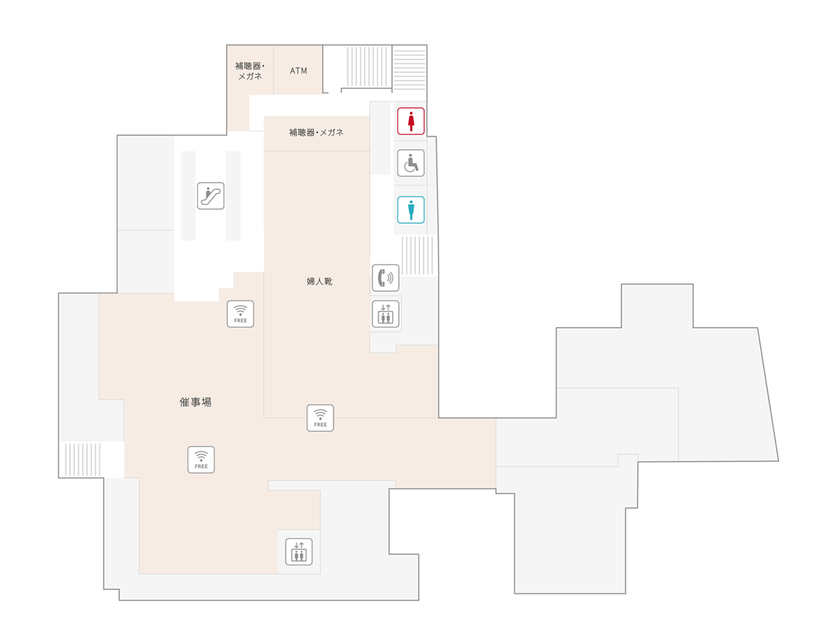 이 플로어에서는 Wi-Fi 무료 접속 서비스를 이용하실 수 있습니다.패스워드 “fujisaki”를 입력해 이용해 주세요.